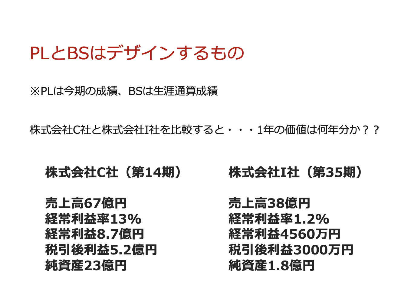 そのために、事業経済性(利益を生み出す構造)を高めることに邁進する必要があります。PLとBSのあるべき姿を定義し、未来を意思の力でデザインしていくことが必要不可欠です。