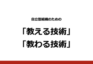 自立型組織では、「教える技術」が重要です。指示命令、管理による指導では、自動的に受動的人材を生み出してしまいます。
