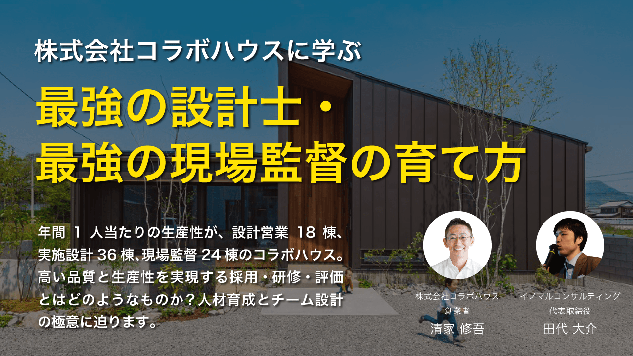 一生懸命に頑張っているのに、営業力が上がらない。設計力が上がらない。という経営相談を多くいただきます。契約率30%を越える会社では、どのような営業をしているのか?いつもカッコいい設計を提案できる会社は、どのように提案をしているのか?高付加価値で生産性が高く、営業利益率が10%を越える会社では、どのような組織哲学があるのか?1人2役というユニット設計、組織構造に秘訣があります。