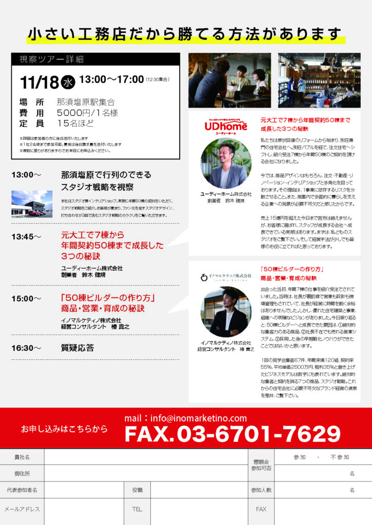 11/18 in 那須塩原 『紹介7棟から年間50棟!』地域No1ブランドビルダーの作り方