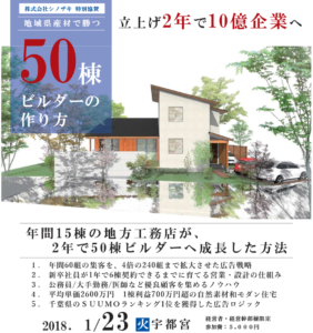 1/23(火)宇都宮 エリアNo.1企業に学ぶ「50棟ビルダーの作り方」