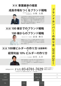 2019年10月24日 全国大会開催!「ブランドカンパニーの作り方」in 東京八芳園