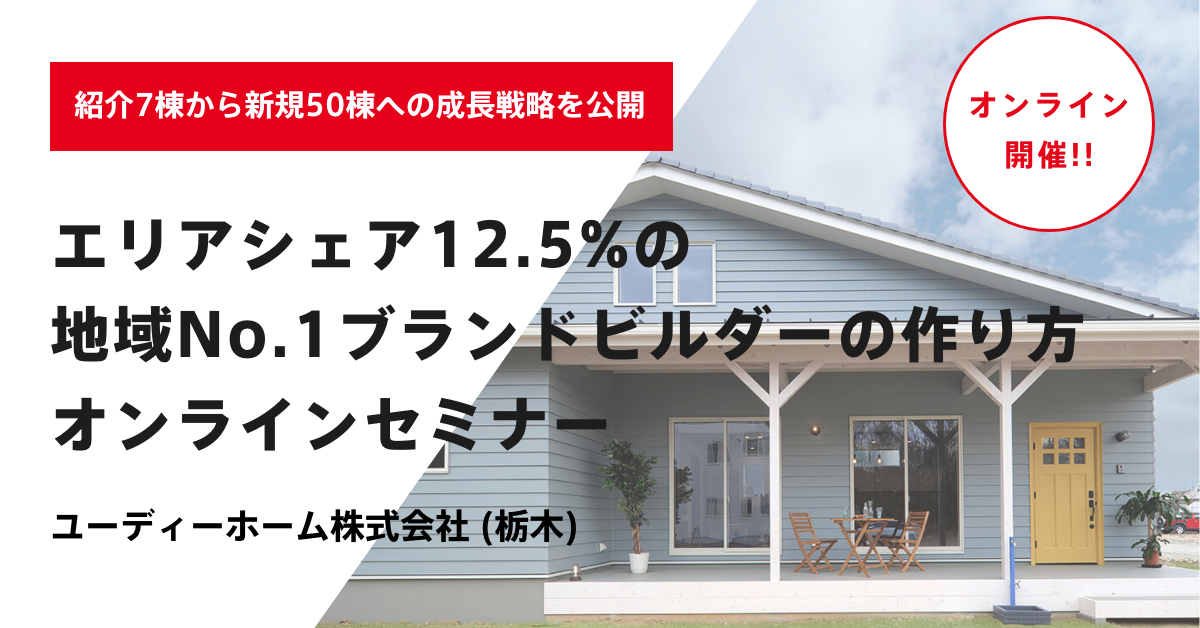 「エリアシェア12.5%の地域No.1ビルダーの作り方オンラインセミナー」ユーディーホーム株式会社(栃木)