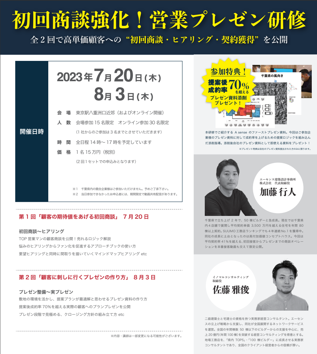 ※1 営業プレゼン研修の開発運営は、エーセンス建築設計事務所株式会社様となります