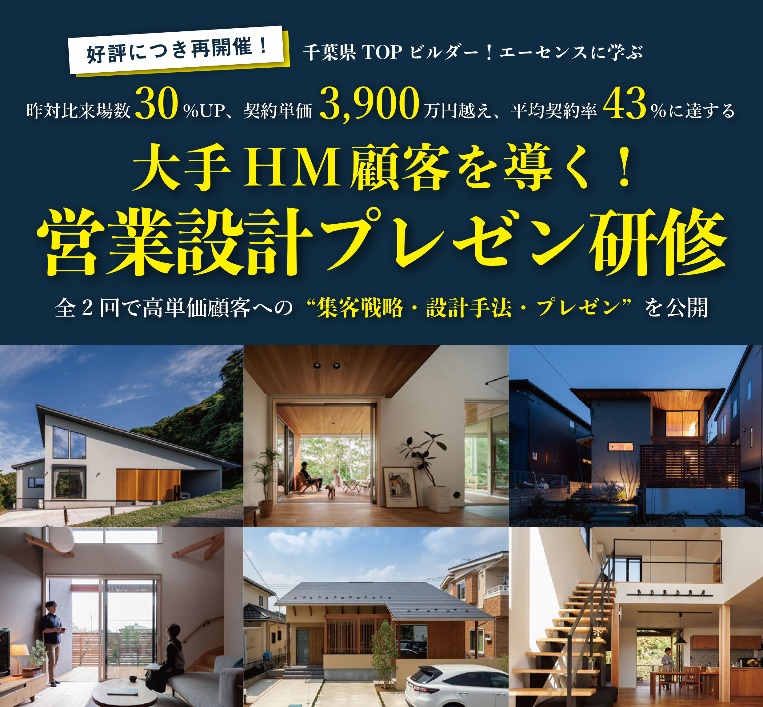 「大手HM顧客を導く!営業設計プレゼン研修」:昨対比来場数30%UP、契約単価3,900万円越え、平均契約率43%を達成する