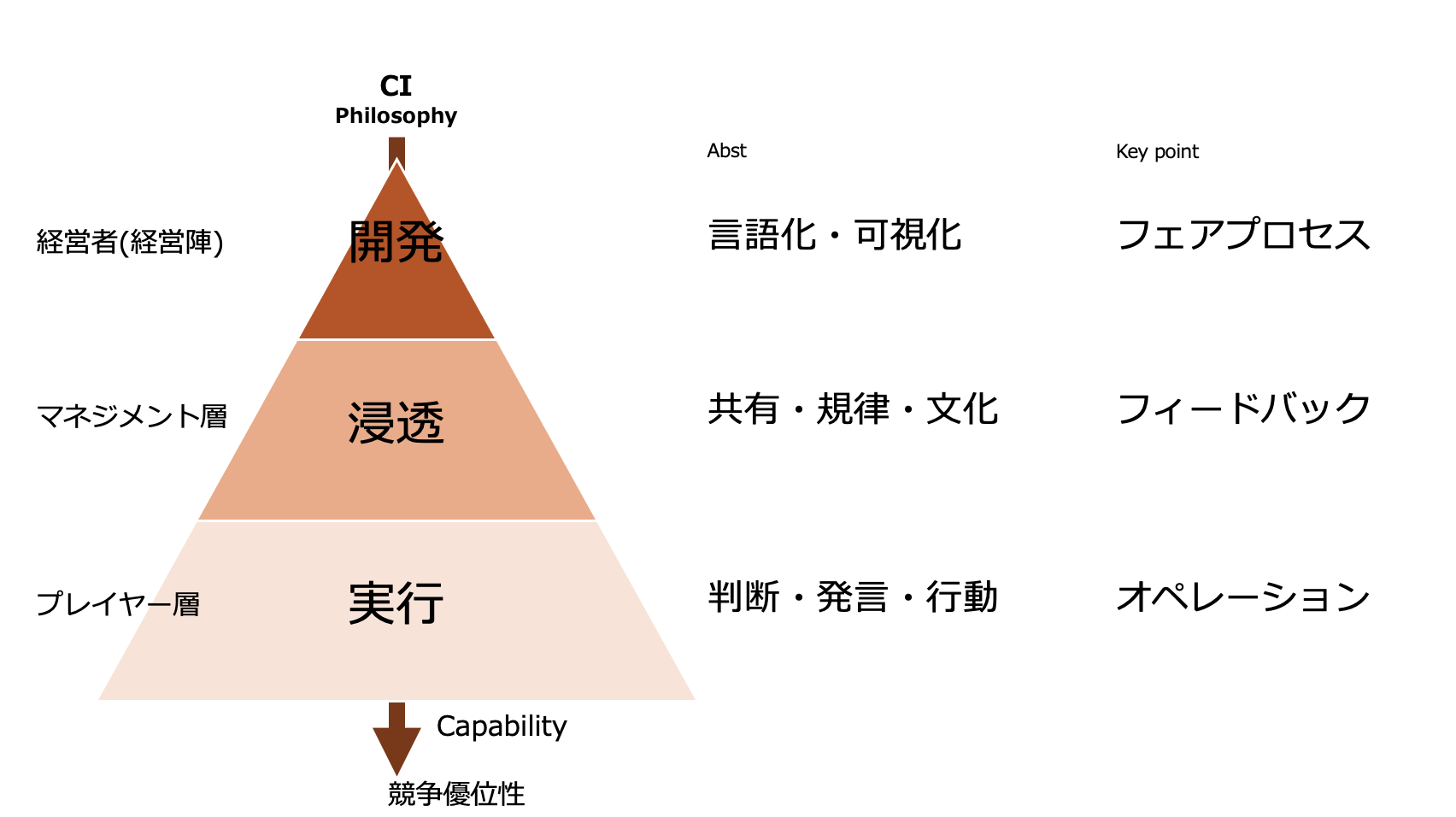 この3ステップを考慮して、開発、浸透、実行を計画しなければ、競争優位性になるCIにはなりえません。