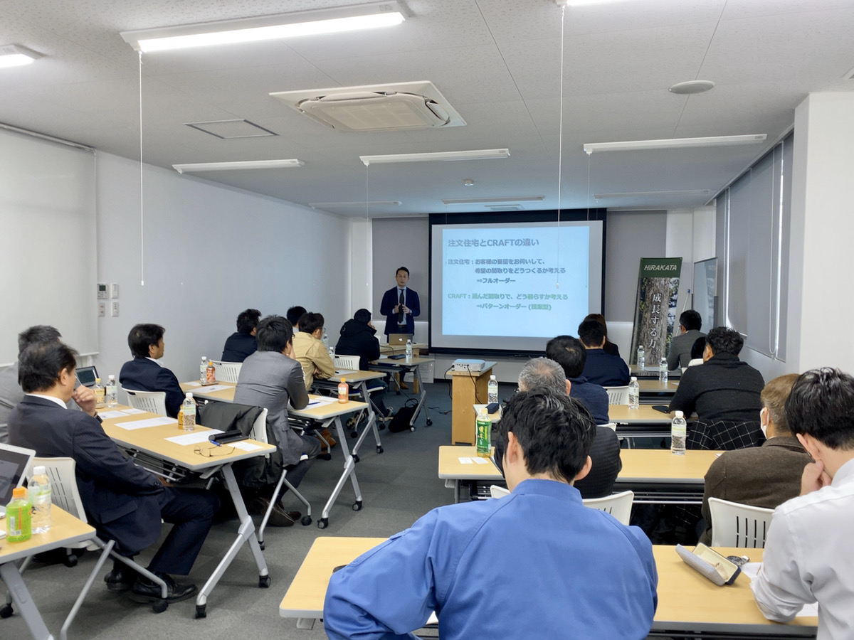 昨日は群馬前橋の平方木材様の場所をお借りして、山口県株式会社銘建 青木会長による「定額制注文住宅CRAFTを使った50棟ビルダーの作り方」セミナーを開催させていただきました。