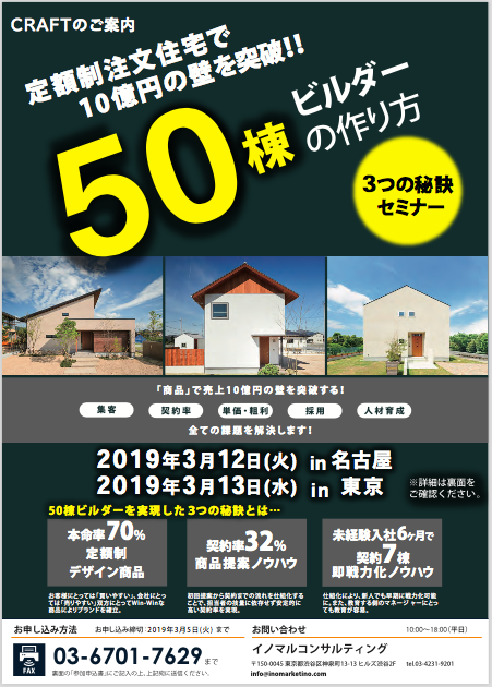3/12名古屋 13東京「定額制注文住宅を使った 50棟ビルダーの作り方」セミナー