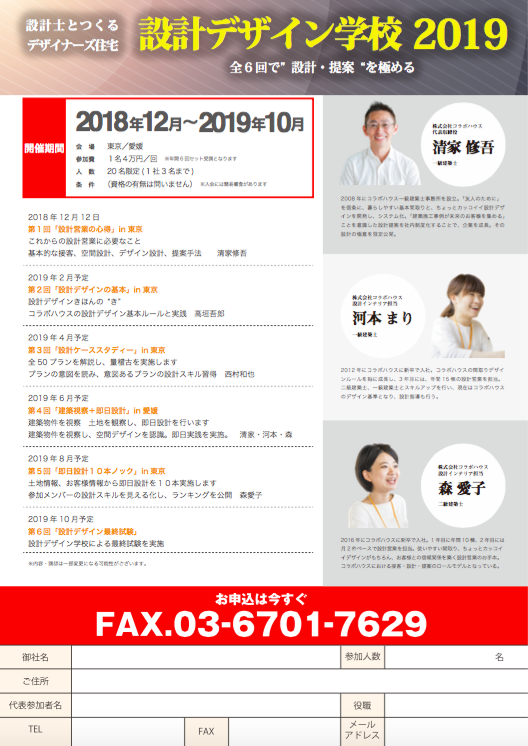 設計デザイン学校2019 「コラボハウスの基本デザイン」