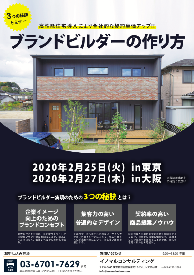 2/25東京 27大阪 「全社的な契約単価アップ!! ブランドビルダーの作り方」セミナー | 住宅建築業界の経営改善コンサルティング|イノマルケティノ株式会社住宅建築業界の経営改善コンサルティング|イノマルケティノ株式会社