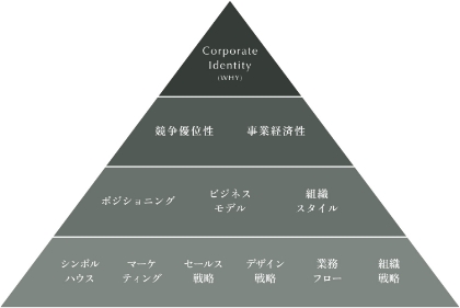 だからこそ、WHY 「我が社は、何のために、どんな建築をするのか」という競争優位性の源泉であるCI(Phylosophy)に目を向け、存在価値から見直し、事業立地をクリエイティブしていくことを大切にしています。